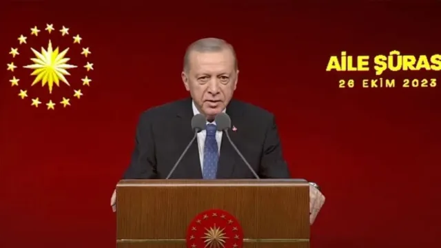 Cumhurbaşkanı Recep Tayyip Erdoğan, Beştepe'de düzenlenen 8. Aile Şurası'nın açılışında konuşuyor.