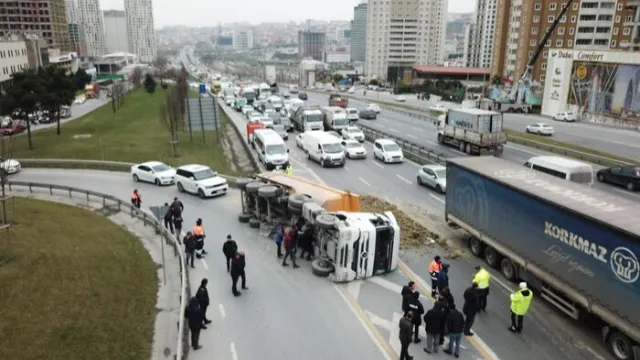 Esenyurt Haramidere mevkii TEM Bağlantı Yolu Bahçeşehir istikametinde, saat 12.30 sıralarında virajı alamayan hafriyat tırı devrildi. Tırın şoförü Mevlüt Sayan yaralanırken, yoldaki diğer sürücüler kazayı polis ve sağlık ekiplerine haber verdi. Kısa sürede olay yerine gelen sağlık ekipleri yaralı şoförü hastaneye kaldırdı. Devrilen tırın dorsesindeki toprak yola saçıldı. Toprak iş makineleri yardımıyla temizlenirken, yolda uzu araç kuyrukları oluştu. Trafik tek şeritten kontrollü olarak sağlanırken, tırı kaldırma çalışmalarına başlandı. Tırın kaldırılması ve toprağın temizlenmesinin ardından yol trafiğe açıldı. Öte yandan kaza yeri ve oluşan trafik havadan da görüntülendi.