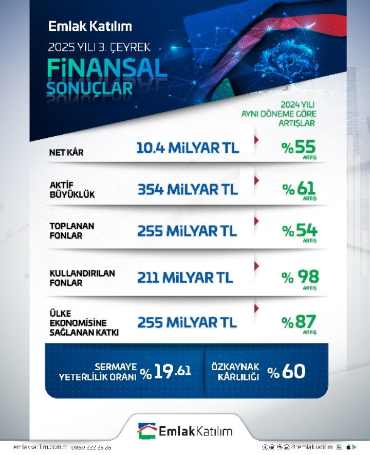 Emlak Katılım, 2025’in üçüncü çeyreğinde sergilediği bu güçlü performansla, katılım bankacılığında sürdürülebilir büyümenin öncüsü olma iddiasını bir kez daha ortaya koydu.