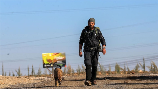 Gittiği her ilde bir fidan diken Özer, yolculuğunun ilk bölümünde yer alan Edirne'nin Keşan ilçesinde yemeğini paylaştıktan sonra peşine takılan sokak köpeğini sahiplendi.